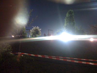 Wie man erkennen kann: nichts! Die Staatsmacht ist mit allem angerückt und hat die ganze Ecke vollkommen umstellt, volle Scheinwerfer vom anliegenden Stadion und jeder wurde kontrolliert.