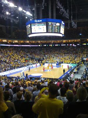 Na, in der O2-World bei ALBA!!!! Ausverkauft, fast 15.000 Zuschauer, nachdem ALBA die ersten beiden Spiele knapp verloren hatte und dannach zwei mal souverän gewonnen hatte.
